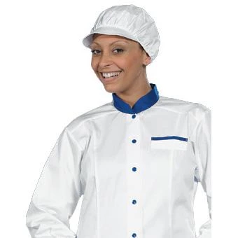 The Denny Lightweight Polycotton Cap is a white women’s cap for wear in the kitchen environment. This cap keeps long hair tidily in place underneath the cap and helps to ensure that strict hygiene standards are met when preparing and cooking food. It has an attractive appearance with a crinkled front design and a small peak.