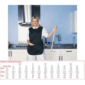 This tabard is composed of 65% polyester and 35% cotton and can be industrial washed up to a temperature of 70C. It is available in 5 sizes to fit hips ranging in size from 34″ to 50″.