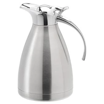 Highly elegant with its satin finished stainless steel body and contrasting mirror polished lip and handle, the shatterproof Elia Deluxe Vacuum Beverage Jug creates a lasting impression on the tabletop while its effective double-wall vacuum insulation ensures that the jug is also highly practical, keeping liquids hot or cold for hours at a time. Featuring a discrete, easy to use lever style lid for enhanced efficiency and thermal retention and to provide a spill-free pouring, the Elia Deluxe Beverage Jug is a practical and stylish way of serving tea, coffee, and chilled drinks in a range of dining environments. Available in three sizes, 0.6L, 1L, and 2L.