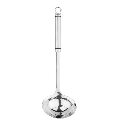 The Stainless Steel Ladle is dishwasher safe and designed with you in mind. It has a hanging loop for simple storage and a stylish design. The ladle is ideal to help serve portions of soups and broths.