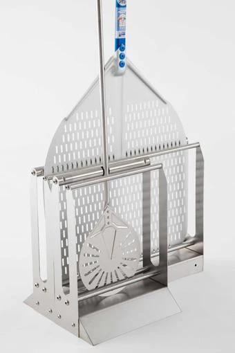 The Support for Pizza Peels is a stainless steel holder perfect for holding your pizza peels safely and securely while retaining easy access when needed.