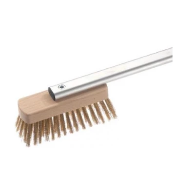 Brush for residential use. With brass bristles 16×5 cm and untreated aluminium handle. 60cm handle.