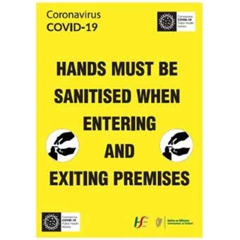 Wall Sanitiser Label. Hands Must Be Sanitised‚ 210x150mm, to help customers with hand hygiene. Available in Yellow and Black or Grey and Black.