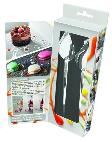 The Matfer Decorating Spoon S/Steel Set are a simple yet incredibly effective method of adding a touch of elegance and flair to any dish. The large decorating spoon (230mm) is ideal for sauces and garnishes, creating colourful spots and bold lines, while the smaller spoon (190mm) is perfect for text, spirals and majestic curves.