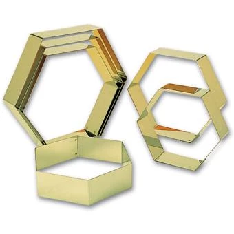 The Matfer Hexagon Cake Frame is made from stainless steel and acts to produce an unusual and unique hexagonal cake base. It makes baking at home and in cafes easy and creates beautifully shaped cakes.