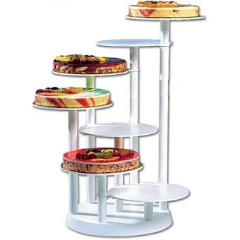 The Matfer 7 Tier Cake Stand is perfect for use at buffets or on cafe counters to give extra height and visibility when displaying cakes. It has 7 tiers each capable of holding cakes with a 280mm diameter and is made from white plastic.