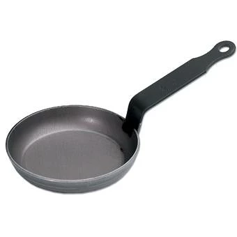 The Matfer Blinis Black Steel Frying Pan is the perfectly sized pan for making blinis (or pancakes!) or frying eggs.