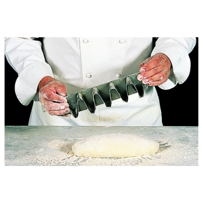 The stainless steel Matfer Country Bread Marker has a zigzag shape which both decorates the bread and guarantees the dough cutting in order to evacuate the gas.