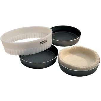 The Matfer Plain Round Deep Tart Tin is ideal for use in restaurant kitchens and bakeries for making tarts, quiches and pies etc. They have a fixed base and a plain edge rim adding a simplistic touch to food presentation. They are available in packs of 12 tins.
