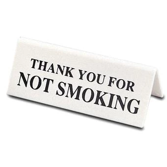 The Thank You For Not Smoking Sign is great for use in restaurants, cafes, receptions and lobby areas to show appreciation to customers for not smoking in the area. This sign is a self standing metal sign with a silver coloured finish.