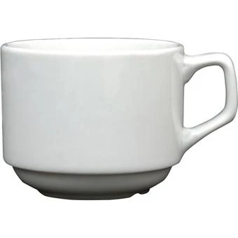 The RG Plain White Stacking Cup is a cost effective tea/coffee cup which can be used to serve refreshments in many establishments including restaurants, cafes, canteens and schools. It is great for serving an afternoon or morning beverage or a refreshment following an evening meal. It is particularly suited for use at events or conferences when serving guests complimentary tea of coffee. The stacking feature of this cup allows for space to be saved in kitchens and on serving counters.