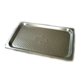 The Stainless Steel Full Size (1/1) Spiked Gastronorm Meat Dish is a large tray style gastronorm container which can be used within the commercial kitchen to hold and serve meat and poultry fillets, steaks and joints. It has a shallow depth of 25mm and a perforated surface which allows for excess juices and fats to drain off.