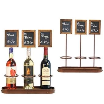 This heavy duty iron wine bottle holder can hold up to three bottles of wine and each slot has a mini chalk board so you can label each bottle or advertise the price to passing customers.
