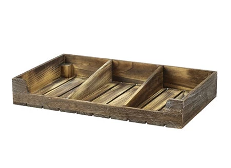 The Wooden Rustic Display Crate is a fantastic eye catching method for displaying food and baked goods. These rustic wooden displays are fully compatible with GN 1/1 Platters and their stackable design enable users to create added height to any display.