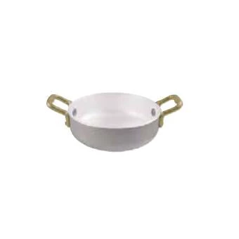Measuring 12cm in diameter, this mini French omelette pan has two golden side handles and is ready for service directly from the kitchen to the table.