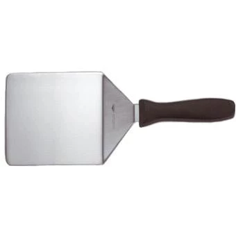 Featuring a durable, flexible stainless steel blade and smooth, easy grip, non-slip nylon handle the Paderno Hamburger Turner allows for easy and safe turning of food during cooking.