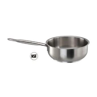 Featuring steep sides which are gently curved at the bottom edge, this Paderno Sauteuse Pan is ideal for lightly frying and searing food, or simmering sauces, with its steep sides preventing sloshing and providing a larger capacity to make it suitable for stews, casseroles, and slow braising. Made from a sleek stainless steel with a special three layer sandwich base with anodised aluminium and stainless steel layers to provide increased heat conduction throughout and to make them suitable for induction hobs, the Paderno Sauteuse Pans are built to last, while their ergonomic hollow, stay cool handles remain comfortable to hold, even with extended use.