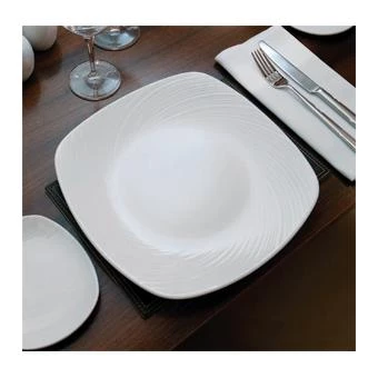 With a refined styling and contemporary square design, the Steelite Spyro Quadro Plates are an elegant way of presenting your delicious dishes. Featuring gently rounded corners and a delicate embossed spiral pattern, the Steelite Spyro Quadro Square Plates are ideal for fine dining establishments and home kitchens alike, with their hard wearing chip resistant finish withstanding even daily restaurant use.