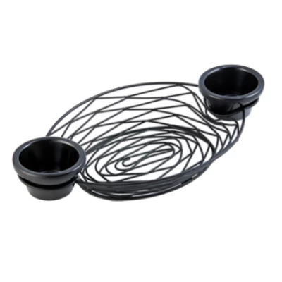 The Artisan Oval Basket With 2 Ramekins is fantastic for serving bread, bagels, pastries or fruit. This sleek, modern black wire basket is powder coated for a durable finish and is perfect for showcasing not only food but also the likes of napkins, decorative soaps or towels.