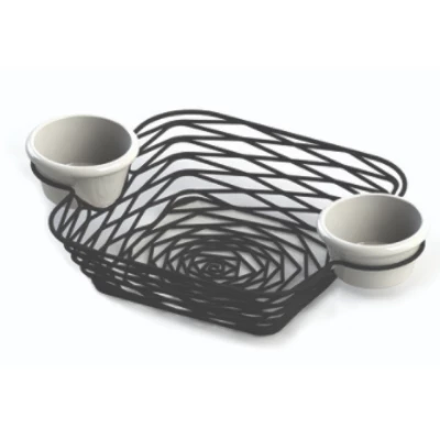 The Artisan Square Basket With 2 Ramekins is fantastic for serving bread, bagels, pastries or fruit. This sleek, modern black wire basket is powder coated for a durable finish and is perfect for showcasing not only food but also the likes of napkins, decorative soaps or towels.