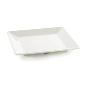 This stylish, crisp white square tray made from melamine is available in 3 different sizes. It has a raised edge which helps food to be kept on the plate and is perfect for serving food platters and a wide variety of other food at buffets.