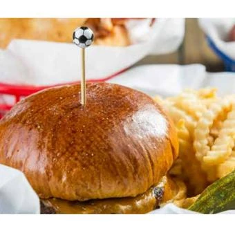 These sporty Football Bamboo Picks help to create a memorable presentation, ideal for burgers and sandwiches, or even entrees and party food.