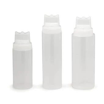 With a unique, three tip opening, these Three Tip Sauce Bottles can be used to create long, wide lines of sauce, and alluring designs to jazz up any meal.