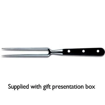 Painstakingly crafted to exacting standards, the Victorinox Fully Forged Carving Fork makes a stylish addition to any kitchen. Forged from a single piece of the highest quality stainless steel alloy, the Forged Carving Fork offers a seamless transition between the prongs and handles ensuring an elegant finish and perfect balance so it remains comfortable even through prolonged use, while the high quality materials and flawless design ensure that this Victorinox Carving Fork can last a lifetime.