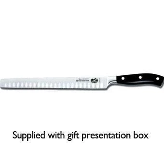 Painstakingly crafted to exacting standards, the Victorinox Fully Forged Slicing Knife is extremely sharp and robust, with a long thin fluted blade to slice and carve meat with ease; this quality forged knife will impress amateur cooks and professional chefs alike. Forged from a single piece of the highest quality stainless steel alloy, this Victorinox Slicing Knife offers a seamless transition between blade and handle ensuring an elegant finish and perfect balance so it remains comfortable even through prolonged use, while the high quality material and flawless design mean that the blade remains sharp for long periods of time, and if well cared for will last a lifetime.