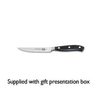 Painstakingly crafted to exacting standards, the Victorinox Fully Forged Steak Knife is extremely sharp and robust, cutting through the toughest of meats with ease, this quality forged knife will impress amateur cooks and professional chefs alike. Forged from a single piece of the highest quality stainless steel alloy, this Victorinox Steak Knife offers a seamless transition between blade and handle ensuring an elegant finish and perfect balance so it remains comfortable even through prolonged use, while the high quality material and flawless design mean that the blade remains sharp for long periods of time.