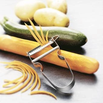 For quick and effortless julienning, the Victorinox Julienne Peeler gets rid of the need for delicate chopping, safely cutting vegetables into fine, wafer thin strips as it glides over the fruit or vegetables.